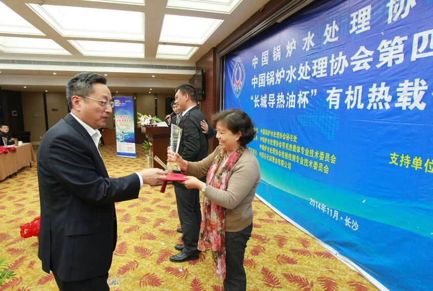 中國(guó)鍋爐水處理協(xié)會(huì)檢驗(yàn)檢測(cè)技術(shù)委員會(huì)主任、江蘇省特檢院常州分院院長(zhǎng)李秀中,為我公司王慧經(jīng)理頒發(fā)獎(jiǎng)杯與證書(shū)。