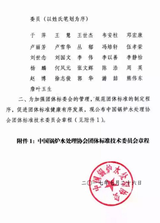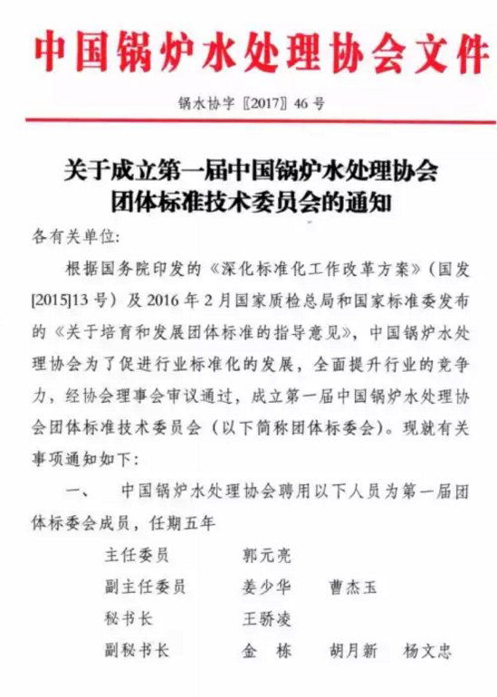 關(guān)于成立第一屆中國鍋爐水處理協(xié)會(huì)團(tuán)體標(biāo)準(zhǔn)技術(shù)委員會(huì)的通知!